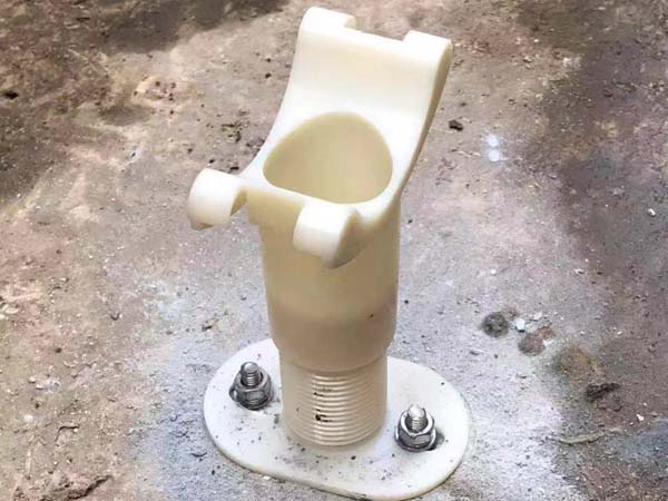 曝气器可调节支架由ABS固定底座、ABS螺纹升降管、尼龙扎带三部分组成。下部通过膨胀螺栓将可调节支架固定于曝气池底,上部通过尼龙扎带固定曝气管,高度可以通过ABS螺纹升降管自由调节。